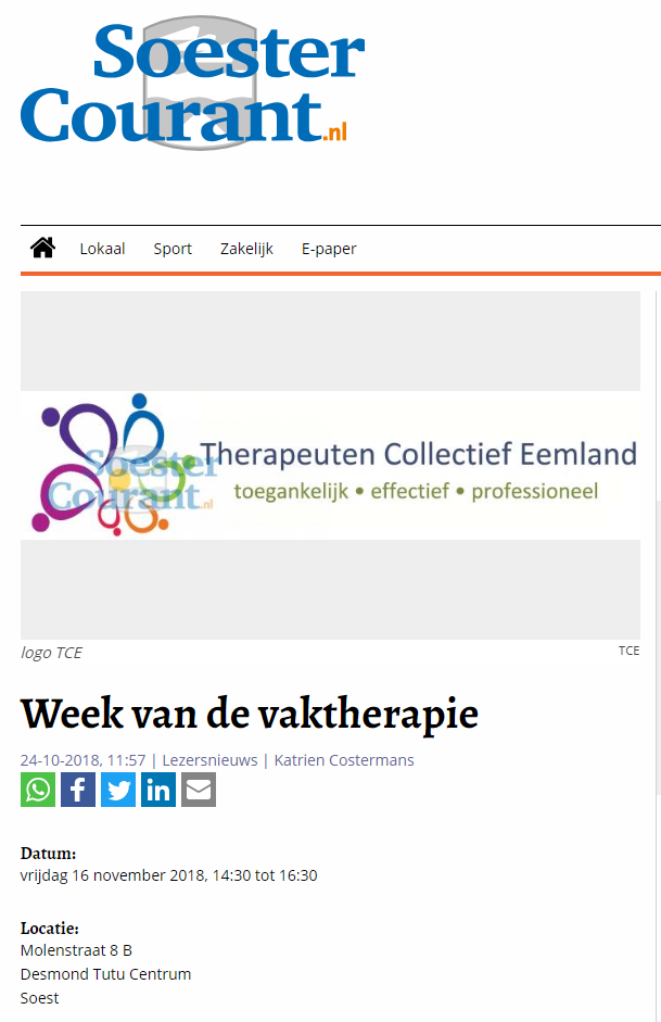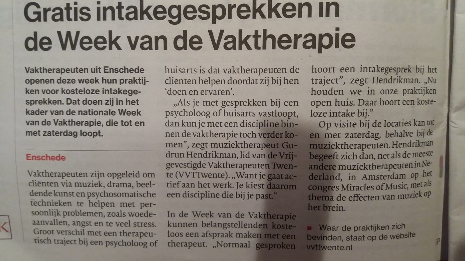 Hieronder vind je een greep uit verschenen artikelen naar aanleiding van de Week van de Vaktherapie in 2018. Klik op de afbeelding om het volledige artikel te lezen.