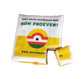 Ben je van plan om een open huis te organiseren voor de Week van de Vaktherapie? Dan is een taart in het thema van de Week van de Vaktherapie niet te missen! Je kunt de taart zelf bestellen en vervolgens bij een zelf gekozen HEMA-locatie ophalen. Natuurlijk ook leuk om samen te delen met je collega’s! De taart is te delen in minstens 10 stukken.